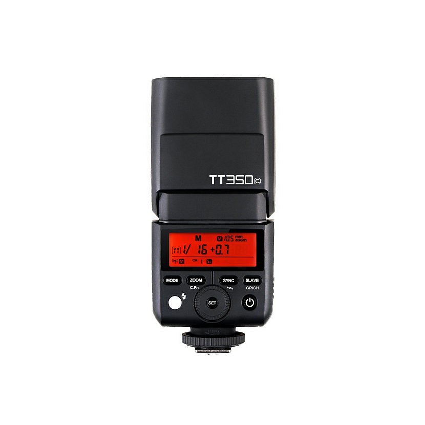 Blesk TT350C ponúkne plnú podporu komunikácie E-TTL II, vysokorýchlostné synchronizáciu (HSS až do 1 / 8000s) a smerné číslo 36 (pri ISO 100 / 105mm). Blesk je napájaný dvoma tužkovými batériami (veľkosť AA). Na plný výkon sa blesk nabije už za 2.2s.
