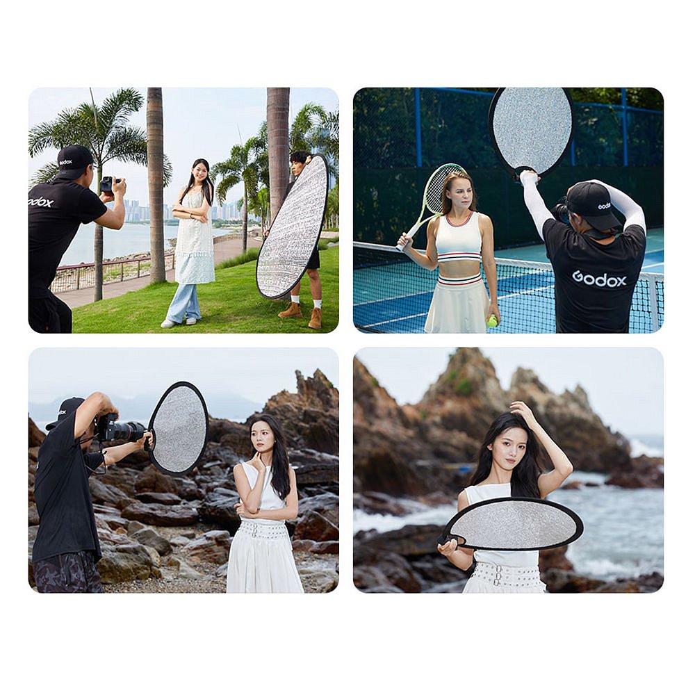 Skladací vetruodolný reflektor Godox W-RFT55 prepúšťa vietor, čím zaisťuje stabilitu v rôznych vonkajších podmienkach.